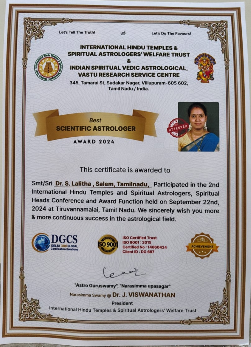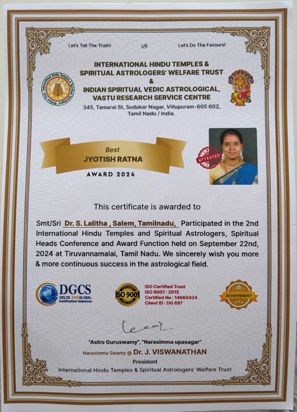 Astrologer : Dr.S.Lalitha Contact : 9894555162