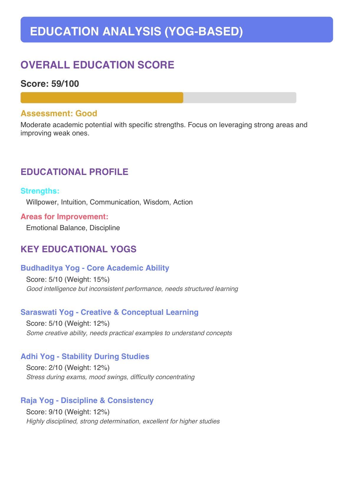 08 Feb 2026"Got detailed analysis for every aspects & remedies for obstruction. More than 90% predictions are true. Worth the money.very much satisfied. Will recommend for my friends & relatives.""