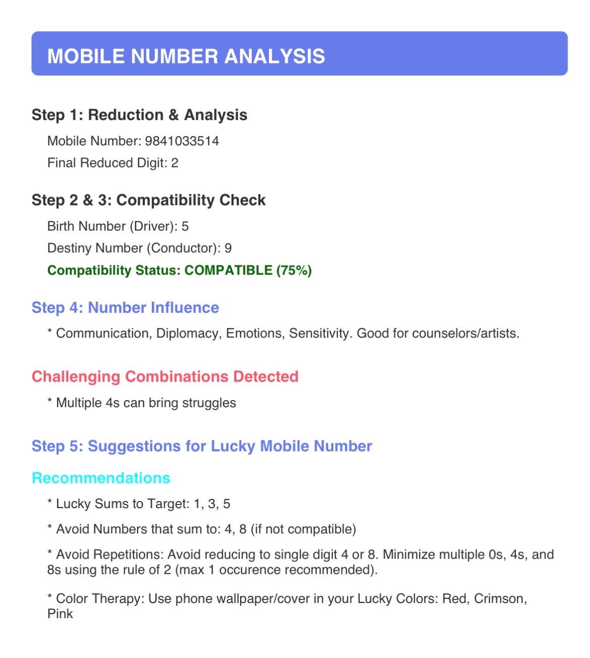 07 Feb 2026"Very much satisfied and good predictions given. I did numerology consulation and found the Unique Numerology report which contains all details in single report and accuracy level was more than 85%. And the report cost was worth for the money which has more than 40 pages and very much detailed with remedies."